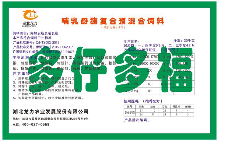 湖北龍力農(nóng)業(yè)發(fā)展股份有限公司坐落于武漢市黃陂區(qū)前川街向陽(yáng)街群順三里298號(hào)附1號(hào)。公司成立于2014年6月,公司自成立以來(lái)把“創(chuàng)全球最大養(yǎng)豬綜合服務(wù)”為企業(yè)愿景。致力于打造教保料品牌”作為公司發(fā)展的明確目標(biāo)。公司一直致力于豬營(yíng)養(yǎng)的研究和開(kāi)發(fā),積極與國(guó)內(nèi)外高校和科研機(jī)構(gòu)合作,推廣養(yǎng)豬技術(shù)、動(dòng)物營(yíng)養(yǎng)新概念,向世界農(nóng)牧企業(yè)學(xué)習(xí)與合作。公司采用國(guó)內(nèi)先進(jìn)的生產(chǎn)工藝,選擇高精度電子配料秤,高均勻度、無(wú)殘留混合機(jī)等先進(jìn)設(shè)備....